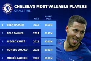 體育資訊10月30日訊 藍軍名宿阿扎爾已經(jīng)入選英超名人堂,《轉(zhuǎn)會市場》統(tǒng)計顯示他仍然是切爾西隊史德轉(zhuǎn)身價最高球員。