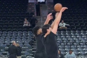 GIF-楊瀚森和夏普三分熱身