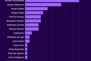 體育資訊10月31日訊 數(shù)據(jù)機構(gòu)squakwa統(tǒng)計了本賽季曼聯(lián)隊內(nèi)英超創(chuàng)造機會情況,B費仍獨自領(lǐng)跑。