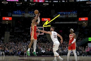 GIF-杰倫-約翰遜壓哨三分但是超時(shí)!