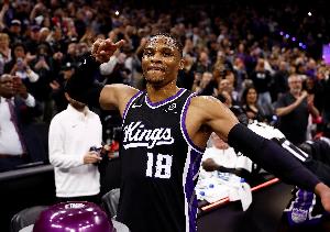 本場比賽,國王球星威斯布魯克出戰(zhàn)37分28秒,17中10,其中三分6中3,罰球4中4,得到26分12籃板6助攻2搶斷,正負(fù)值-5。