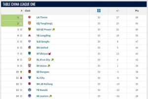 2025中甲大結(jié)局。第1名遼寧鐵人、第2名重慶銅梁龍升超,第15名廣西平果、第16名青島紅獅降乙。