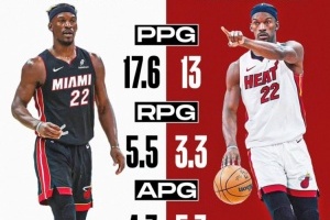 申請(qǐng)交易前巴特勒?qǐng)鼍?7.6分5.5籃板4.7助攻、申請(qǐng)交易后(三場(chǎng))場(chǎng)均13分3.3籃板5.7助攻