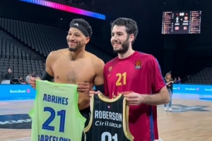 賽后,目前效力于巴薩男籃的阿布里內(nèi)斯和效力于ASVEL里昂維倫班男籃的羅伯森交換了各自的球衣。