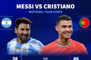 德轉(zhuǎn)對比國家隊(duì)數(shù)據(jù):梅西196場115球64助,C羅226場143球46助