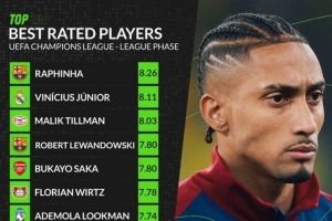 體育資訊1月29日訊 歐冠小組賽將在今晚迎來最后一輪比賽,whoscored也統(tǒng)計了本賽季場均評分情況,巴西雙星分列前二。