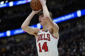 公牛球員布澤利斯上半場表現(xiàn)不錯,三分線外百發(fā)百中,沖搶籃板也還是很積極。