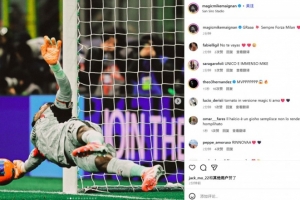 他也在賽后通過社媒曬出自己的多張撲救照,并配文:“哈!?? 永遠(yuǎn)佛砸米蘭(米蘭前進(jìn))????”