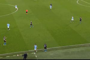 比賽第24分鐘,皮球飛向場邊,瓜帥扔球時擊中布魯日主帥海恩的屁股,隨后瓜帥趕緊上前與布魯日主帥擁抱。