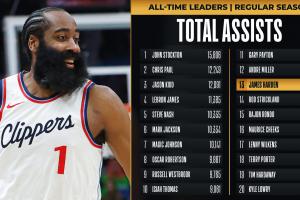 這樣,哈登生涯助攻數(shù)正式升至NBA歷史第13位,下一個(gè)追逐安德烈-米勒(8524)。