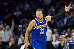 第三節(jié)比賽,尼克斯球星布倫森突然爆發(fā),單節(jié)8中6,三分球3中2,罰球4中4,砍下18分1籃板1助攻的數(shù)據(jù)。
