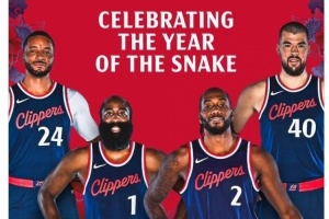 體育資訊1月30日訊 今天凌晨(今日賽前)快船官推曬出了球隊(duì)核心鮑威爾、哈登、小卡、祖巴茨同框照,寫道:“祝你蛇么愿望都成真!蛇年大吉,#快船國度?????”