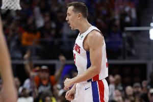 活塞球員鄧肯·羅賓遜本場(chǎng)比賽手感不太理想,第一節(jié)三分6投全鐵,最后一節(jié)才找到三分手感,不過(guò)他最后絕平三分被帽。