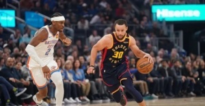 庫里上半場(chǎng)只得4分,雷霆第二節(jié)過半就領(lǐng)先12分。那時(shí)勇士需要挽住氣勢(shì)。