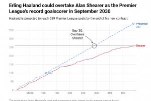 天空預(yù)測(cè):按目前效率哈蘭德2030年9月破希勒260球紀(jì)錄,屆時(shí)30歲