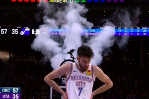 GIF-煙霧機突然啟動致比賽暫停 處理后比賽恢復