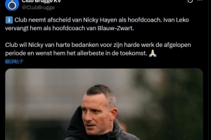 布魯日官方寫道:“布魯日俱樂部宣布尼基·海恩卸任主教練一職,伊萬·萊科將接替他擔任主教練?!?/p>