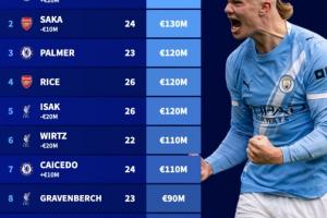 體育資訊12月09日訊 今日德轉(zhuǎn)更新新一期英超球員身價(jià),哈蘭德2億居首,伊薩克降至1.2億,維爾茨降至1.1億。