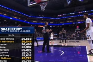 他的總得分來(lái)到25729分,超越卡特升至NBA歷史第23位。