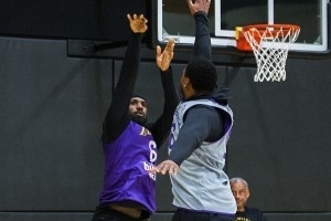 “球隊在訓練。”湖人官推寫道。