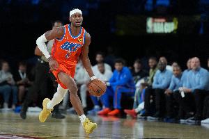 此役,亞歷山大依舊高效表現(xiàn)但三分不準(zhǔn),他出戰(zhàn)36分半,投籃23中12,三分7中1,罰球4中4,得到29分4籃板5助攻1蓋帽5失誤。