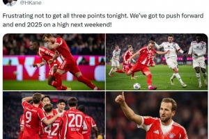 本場(chǎng)比賽凱恩點(diǎn)射破門(mén),賽后他在社媒鼓勵(lì)球隊(duì)寫(xiě)道:“很失望今晚未能全取三分,我們必須全力以赴并在下周比賽中為今年完美收官?!?/p>