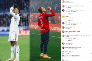 本場比賽姆巴佩率先破門,進球后他也做出與弟弟伊?!つ钒团逋顟c祝動作,配文寫道:“你看到了嗎?”