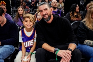 本場(chǎng)比賽,太陽(yáng)主場(chǎng)迎來(lái)了一位重量嘉賓——23枚奧運(yùn)金牌得主邁克爾·菲爾普斯。