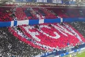賽前沙爾克04球迷為歡迎來訪的紐倫堡,完成了一次精美的TIFO變換,1秒鐘由沙爾克04隊徽變成紐倫堡隊徽。