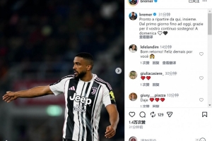 布雷默社媒曬出比賽照片,慶祝復出,他寫道:“準備好從這里與大家一起重新出發(fā)?!?/p>