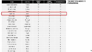在國際足聯(lián)公布的最佳陣前鋒位置評(píng)分中,拉菲尼亞排名第五,其中球迷評(píng)分5分、專家評(píng)分7分,總得分12分,落后于登貝萊(26分)、亞馬爾(22分)、哈蘭德(17分)、姆巴佩(16分)。