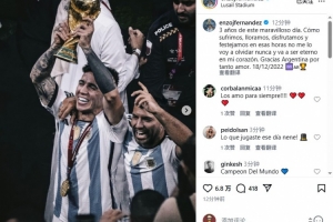 恩佐寫道:“這個美妙的三周年紀(jì)念日。在那幾個小時里,我們?nèi)绾渭灏?、哭泣、享受并慶祝,我將永生難忘,它將永遠留在我心中。感謝阿根廷給予如此多的愛,2022年12月18日。”