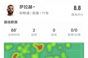 薩拉赫本場比賽數(shù)據(jù)如下: