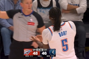GIF-多特與戈貝爾籃板卡位推搡被吹犯規(guī),麥丹同時(shí)三分還命中