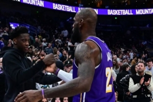 2026屆NBA選秀熱門球員AJ·迪班薩更新Instagram Story,曬出自己近日現(xiàn)場(chǎng)觀看爵士主場(chǎng)迎戰(zhàn)湖人比賽賽后與詹姆斯擁抱的照片。