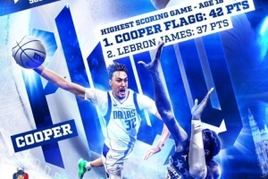 杜克官方曬出了弗拉格19歲前的幾項(xiàng)紀(jì)錄的數(shù)據(jù)海報(bào):