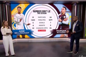 里奧·科克說:說實(shí)話,這兩人都是頂級球員。從數(shù)據(jù)上看,確實(shí)非常相近。當(dāng)然,不同之處在于人們會說貝林厄姆效力的是皇家馬德里這樣的一家頂級豪門,而摩根·羅杰斯是在阿斯頓維拉證明自己。
