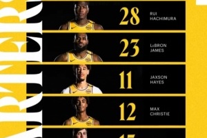 值得一提的是,本賽季湖人擺出這套首發(fā)還沒(méi)輸過(guò),戰(zhàn)績(jī)?yōu)?勝0負(fù)。