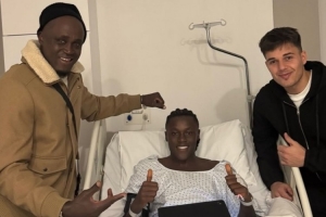 昆達在對陣本菲卡的比賽中右腳第五跖骨骨折,因此來到倫敦接受手術,他在社交媒體上曬出手術成功后的照片,這位小將躺在病床上豎起大拇指。