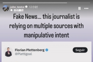 里昂俱樂部老板特克斯托在社交媒體上轉(zhuǎn)發(fā)這條消息,并配文:“假新聞,這名記者依賴多個(gè)消息來源,帶有操縱意圖?!?/p>
