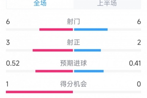 體育資訊2月3日訊 在本輪意甲米蘭德比半場(chǎng)戰(zhàn)罷,AC米蘭暫時(shí)1-0領(lǐng)先,以下為雙方半場(chǎng)數(shù)據(jù)對(duì)比: