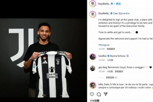 凱利通過社媒曬出自己手持尤文球衣的加盟照,并配文:“你好(ciao,意大利語),@尤文圖斯俱樂部?!?/p>