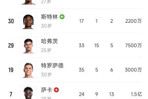 阿森納的前鋒線再傷1人,6人的鋒線群已經(jīng)有一半傷缺:薩卡、熱蘇斯、馬丁內(nèi)利傷,哈弗茨、斯特林、特羅薩德健康。