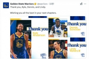 “謝謝你們,李凱爾、施羅德、沃特斯!祝你們在新的旅程中一切順利!”勇士官推如此寫道。