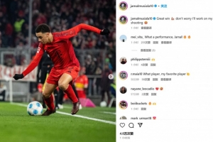 穆西亞拉也曬出自己的比賽照,并配文:“偉大的勝利!別擔(dān)心,我會(huì)提高自己的射術(shù)??”