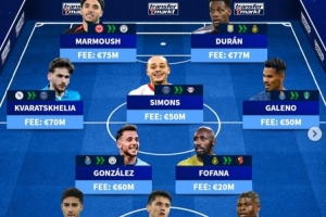 中場(chǎng):克瓦拉茨赫利亞(巴黎,7000萬)、尼科-岡薩雷斯(曼城,6000萬)、哈維-西蒙斯(萊比錫,5000萬)、福法納(雷恩,2000萬)、加萊諾(吉達(dá)國(guó)民,5000萬)