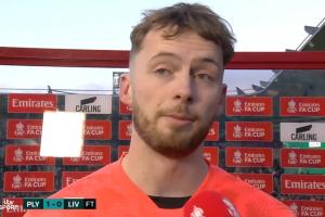 體育資訊2月10日訊 利物浦0-1普利茅斯止步足總杯32強(qiáng),普利茅斯門(mén)將康納-阿扎爾接受英國(guó)獨(dú)立電視臺(tái)采訪。