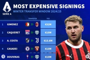 體育資訊2月10日訊 五大聯(lián)賽冬窗已經(jīng)結(jié)束,《轉(zhuǎn)會(huì)市場(chǎng)》也列出了意甲冬窗引援最貴榜單,米蘭中鋒圣地亞哥-希門尼斯領(lǐng)銜。