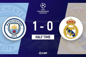 半場(chǎng)結(jié)束,曼城暫1-0皇馬。