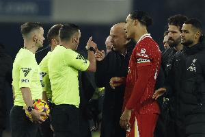 英超第15輪補(bǔ)賽,利物浦2-2遭埃弗頓絕平,賽后兩隊(duì)發(fā)生沖突,沖突中利物浦主帥斯洛特和助教、瓊斯、埃弗頓球員杜庫雷被紅牌罰下。